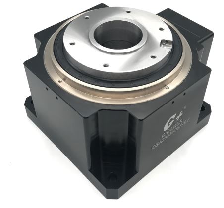 See on täpset täisnurga pöörlevat laua mudelit GSA200-05K-SV, mille ülekandearv on 1: 5 servomootori jaoks 200 mm. Precision Right Angle Rotary Table muudab juhtmestiku ja torustiku mugavamaks ja lihtsamaks ning selle funktsiooni eelised on eriti olulised keerulistes juhtmestikutes ja torustikes. Kõrge tugevusega konstruktsiooni korral võib see kanda suuremat aksiaalset koormust rohkem kui Hollow Rotary Table kuni 5000N.